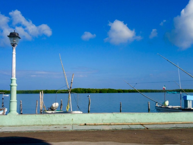 C’est dimanche matin, tout est calme pendant que nous prenons notre petit-déjeuner avec une vue imprenable devant nous. Rio Lagartos, Yucatán, Mexique.