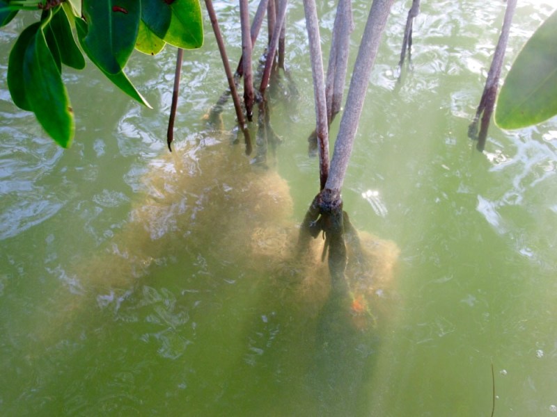 Les longues racines des arbres de la mangrove leur permettent de se nourrir, Rio Lagartos, Yucatán, Mexique.