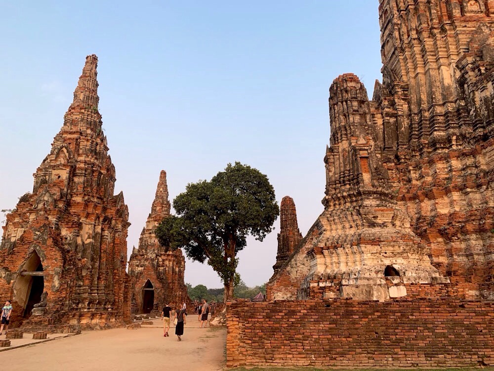 Promenade sur les ruines du Wat Chao Wattanaram, une rangée de bouddhas peut être observée encore à ce jour, certains sont en meilleurs état que les autres. Ayutthaya, Thaïlande.