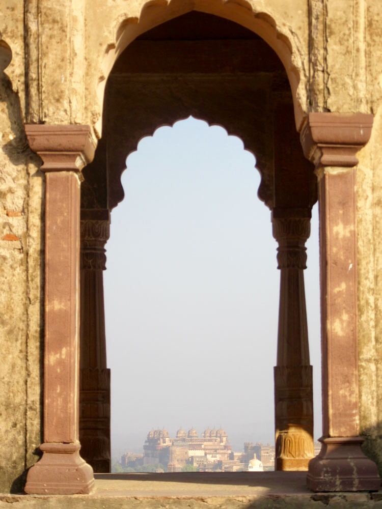 Le temple Laxmi Narayan offre une vue superbe sur la ville et les environs, Orchha, Inde.