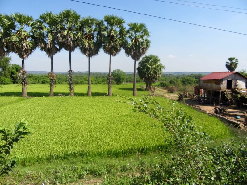 Une belle rizière au détour du chemin sur la route de Chhlong, Cambodge.