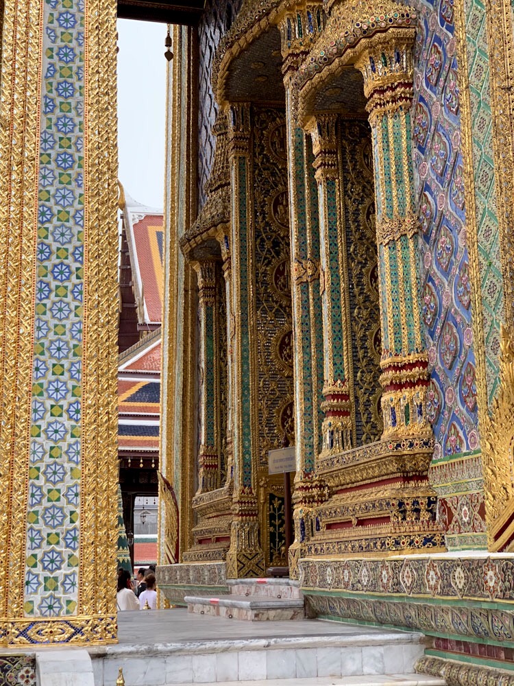 Les murs des édifices sur le site du Wat Phra Kaew et du Grand Palais sont richement décorés, Bangkok, Thaïlande.