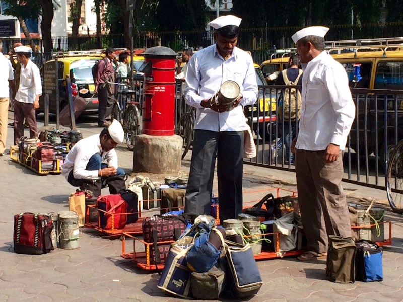 Arrivés par trains, es repas chauds sont triés et livrés avec exactitude, Churchgate, Mumbai, Inde.