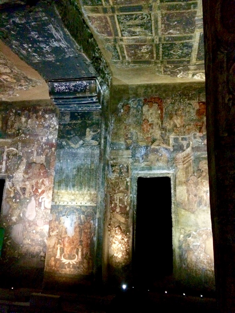 Il est encore possible d’admirer les peintures anciennes sur les murs des grottes de Ajanta, Inde