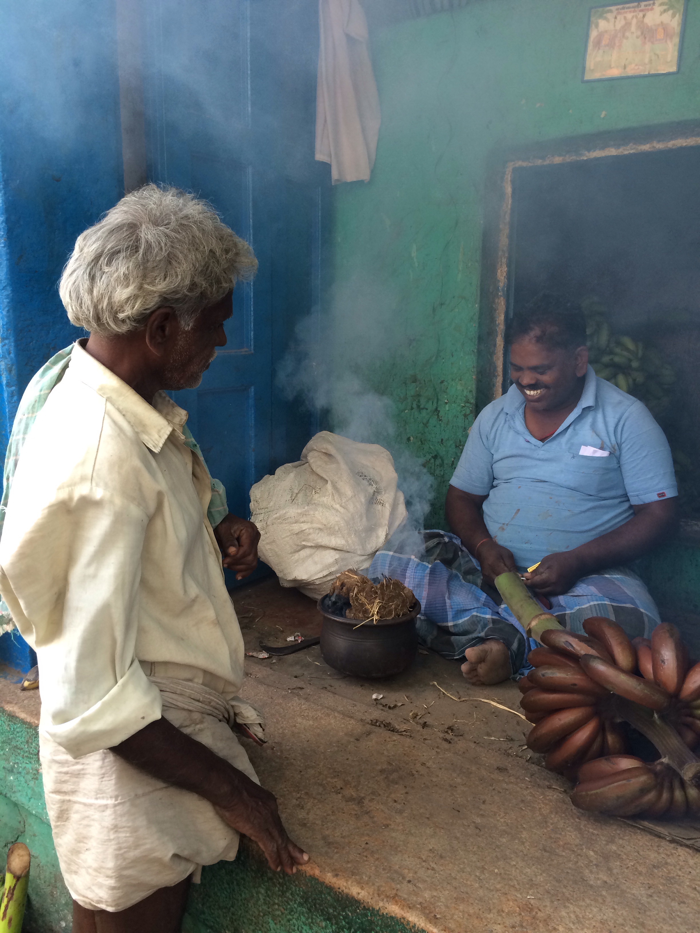Fumerie de bananes. Elles deviennent rouges. Madurai