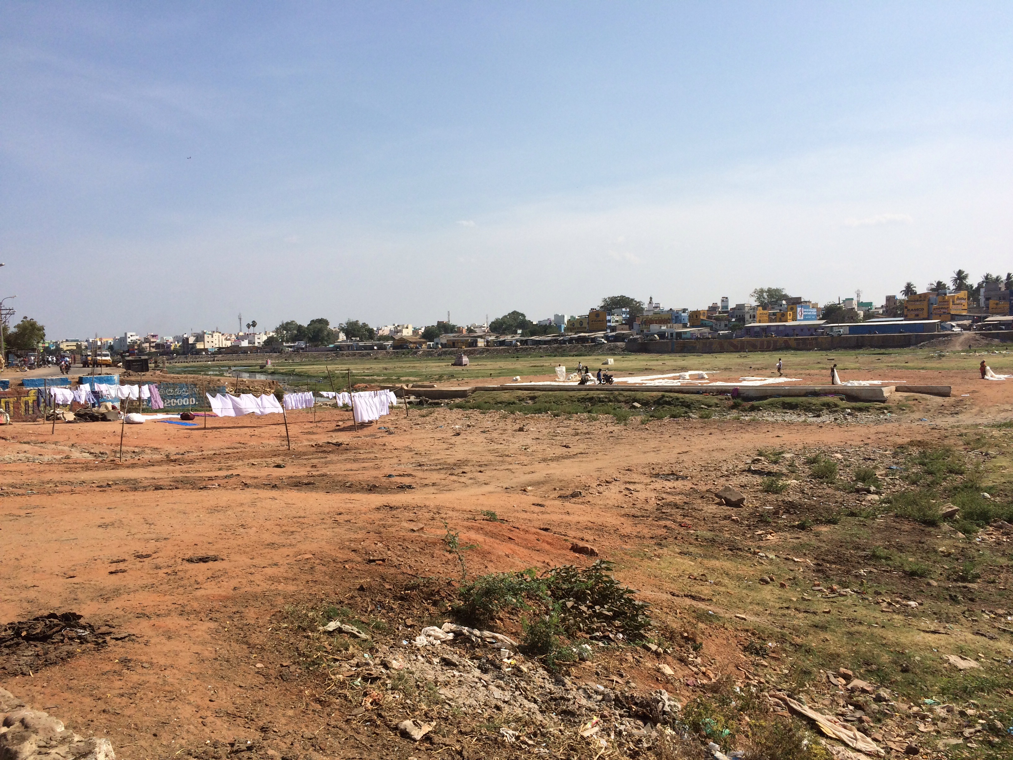 Madurai, séchage du linge sur la rivière asséchée