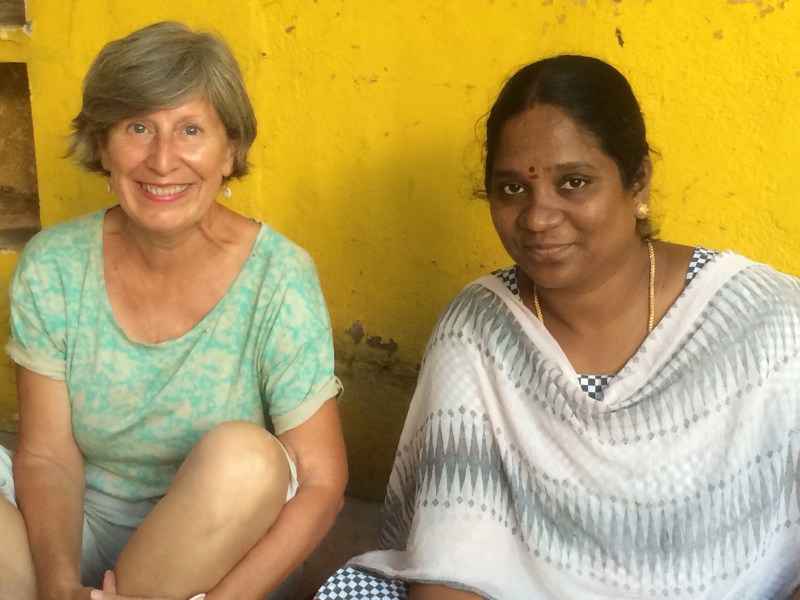 Jocelyne et Anitha professeur de kolam, Centre Culturel Sita, Puducherry