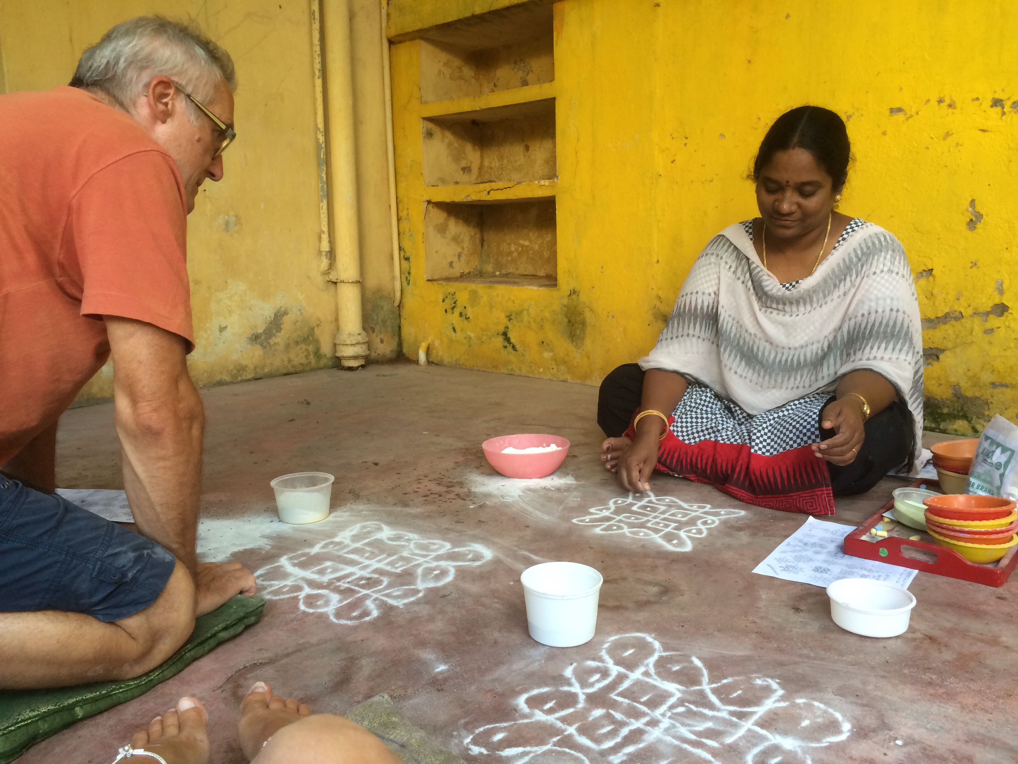 Robert bien concentré à suivre les indications d’Anitha, Centre Culturel Sita, Puducherry