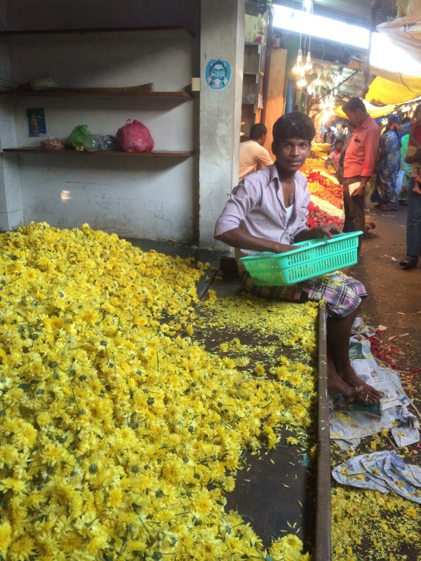 Marchand de fleurs au Grand Bazaar, Puducherry