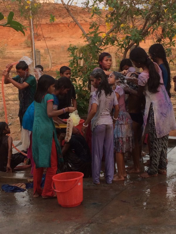 Happy Home, les grands aident les petits après Holi, Puttaparthi