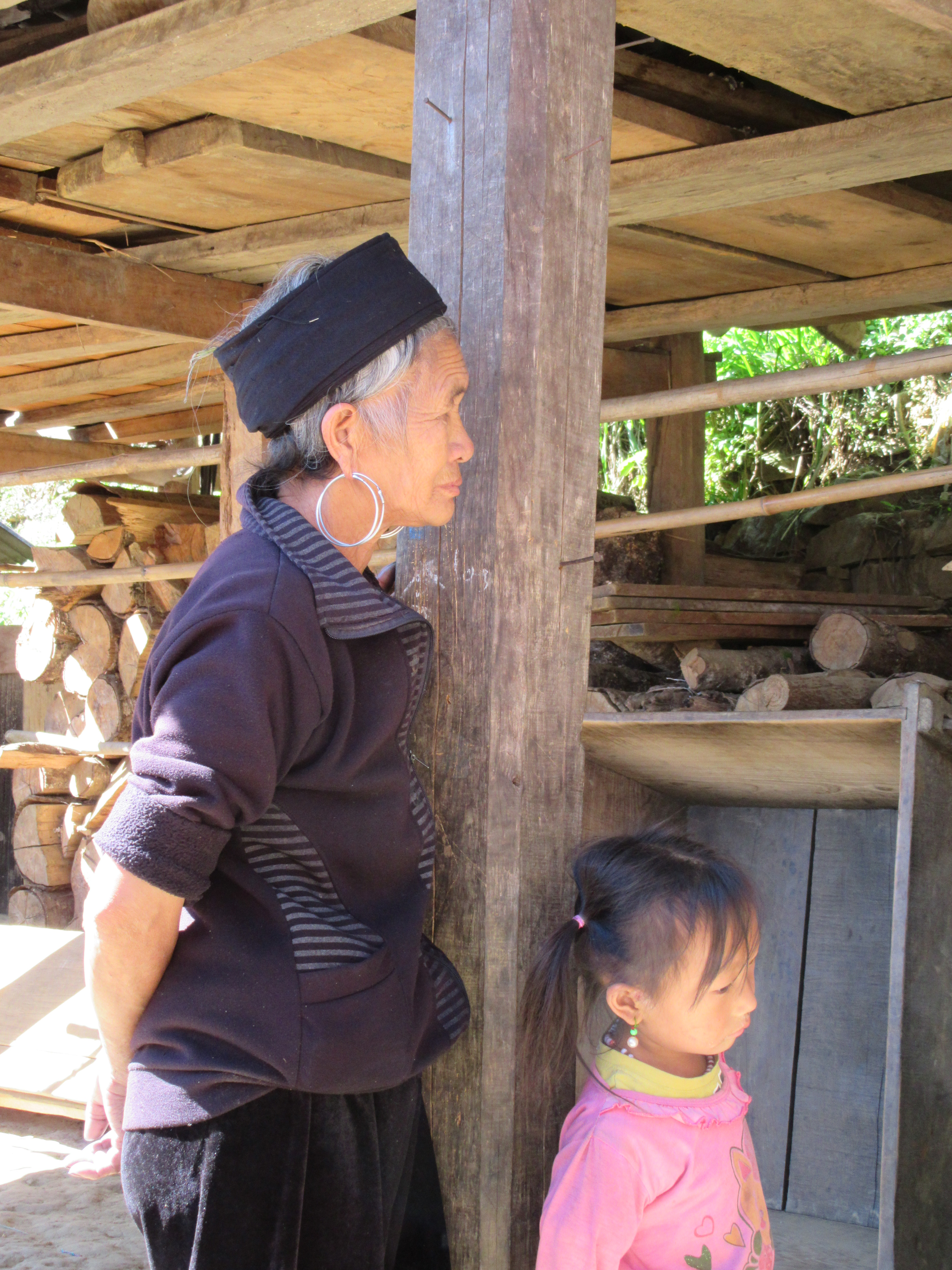 Une femme Hmong et une petite fille se sont approchées pour observer la scène de magasinage., Sapa