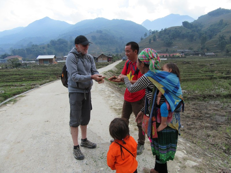 Robert frotte des feuilles d’Indigo dans ses mains.