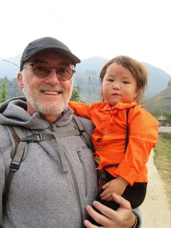 Robert avec la petite fille d’une paysanne qui nous a accompagnés une partie de la route en rentrant chez elle.
