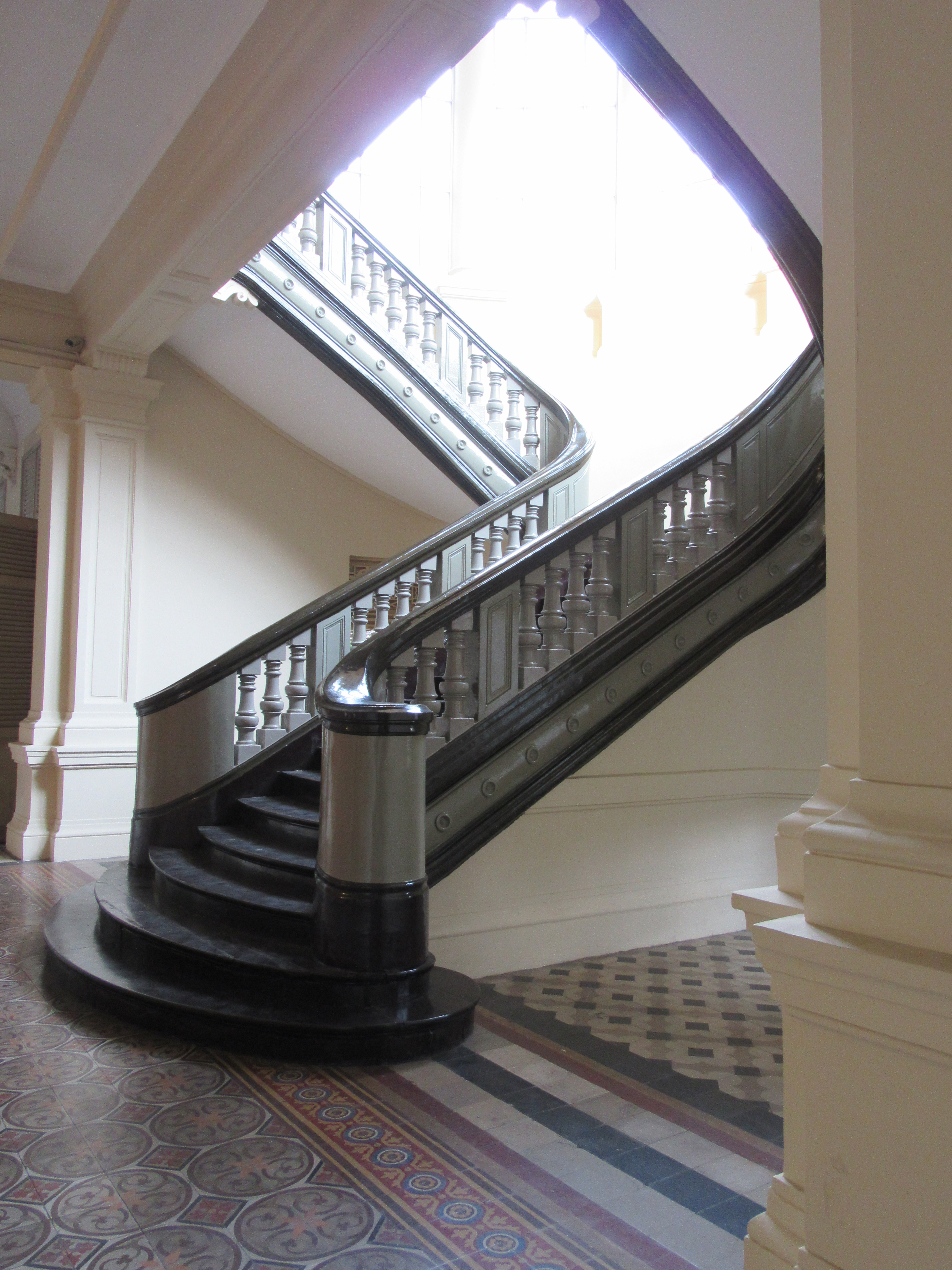 Escalier au Ho Chi Minh City Museum, les mariés s’y font photographier.
