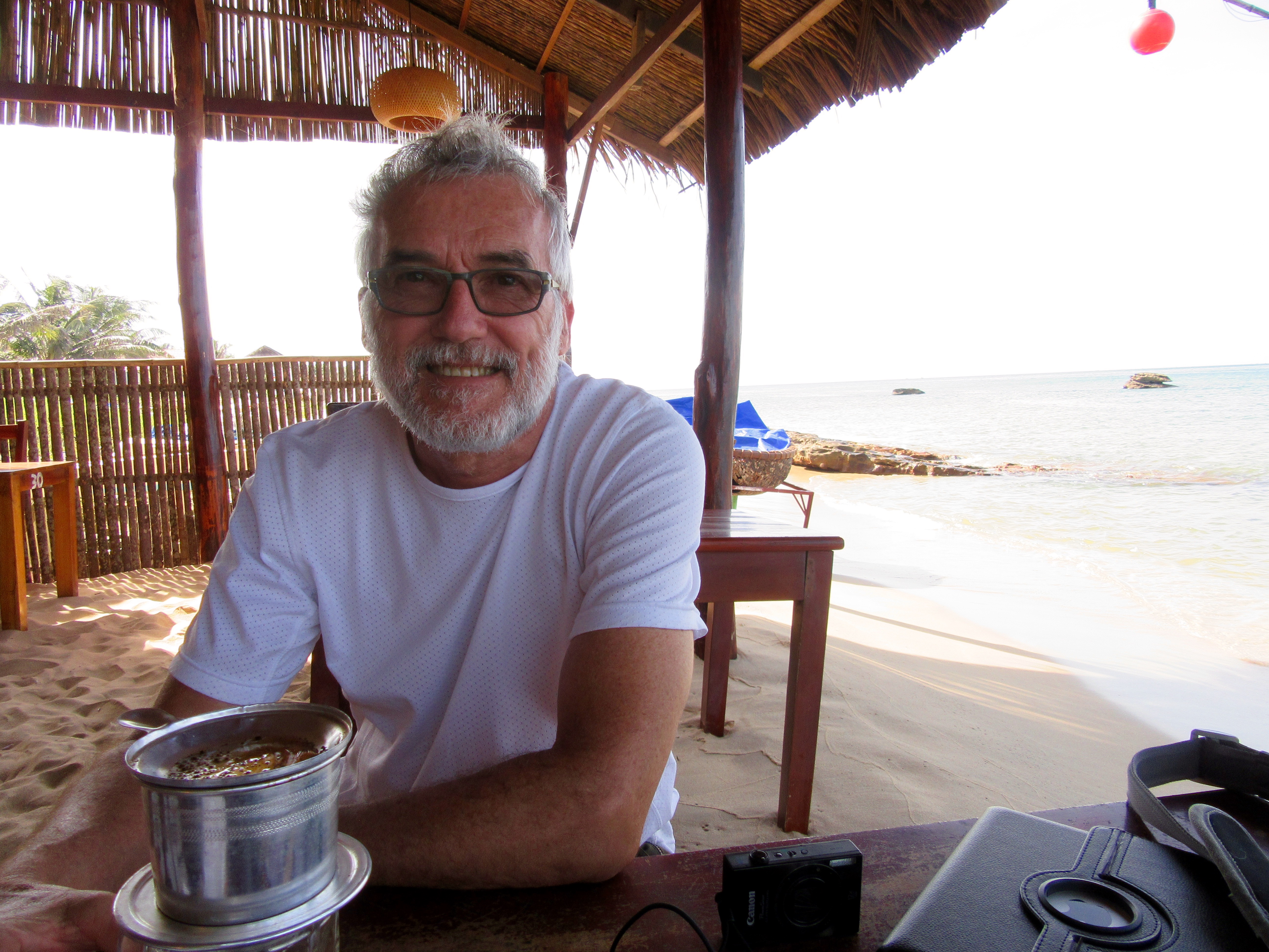 Le café du matin, les dgens us pieds dans le sable, Nhat Lan Resort, île Phú Quoc, Vietnam