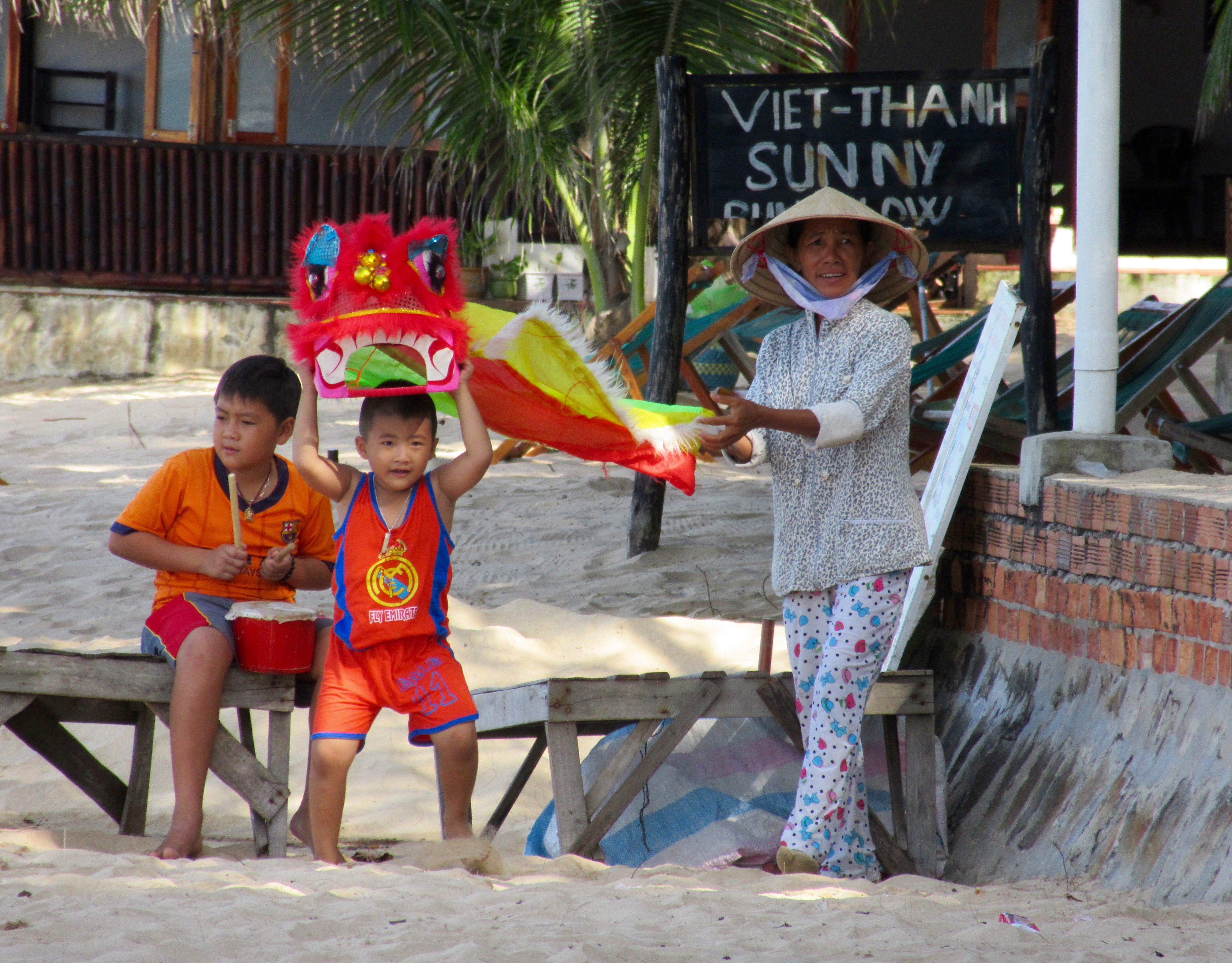 Des enfants s’amusent sur la plage du Nhat Lan Resort, Duong Dong, Phú Quoc
