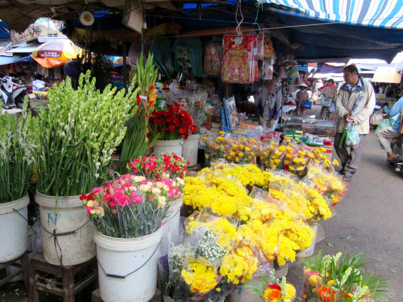 Section des fleurs, les parfums sont au rendez-vous, marché de Chau Doc, Vietnam
