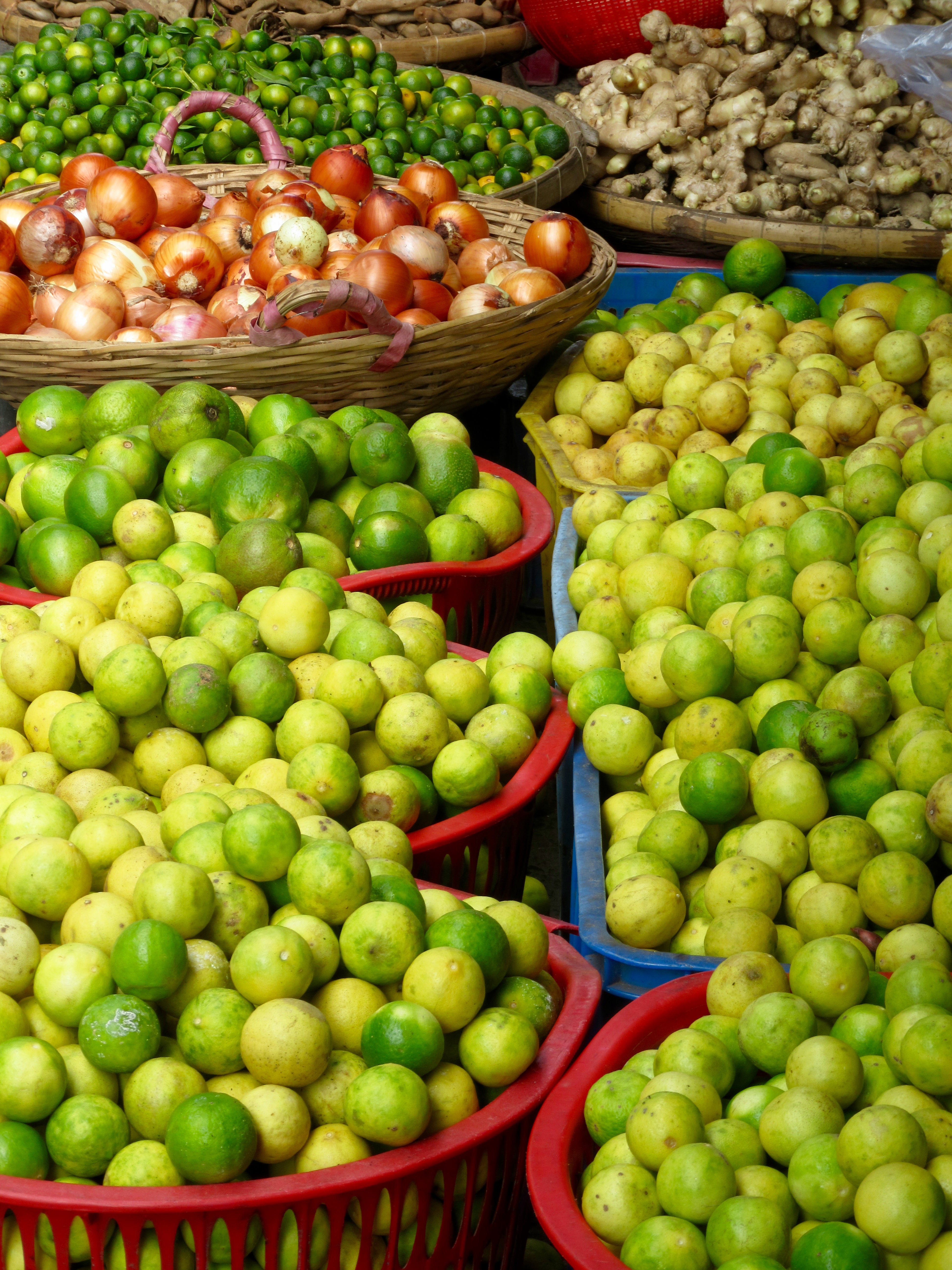 Citrons verts, oignons, gingembre et compagnie…, marché de Chau Doc, Vietnam
