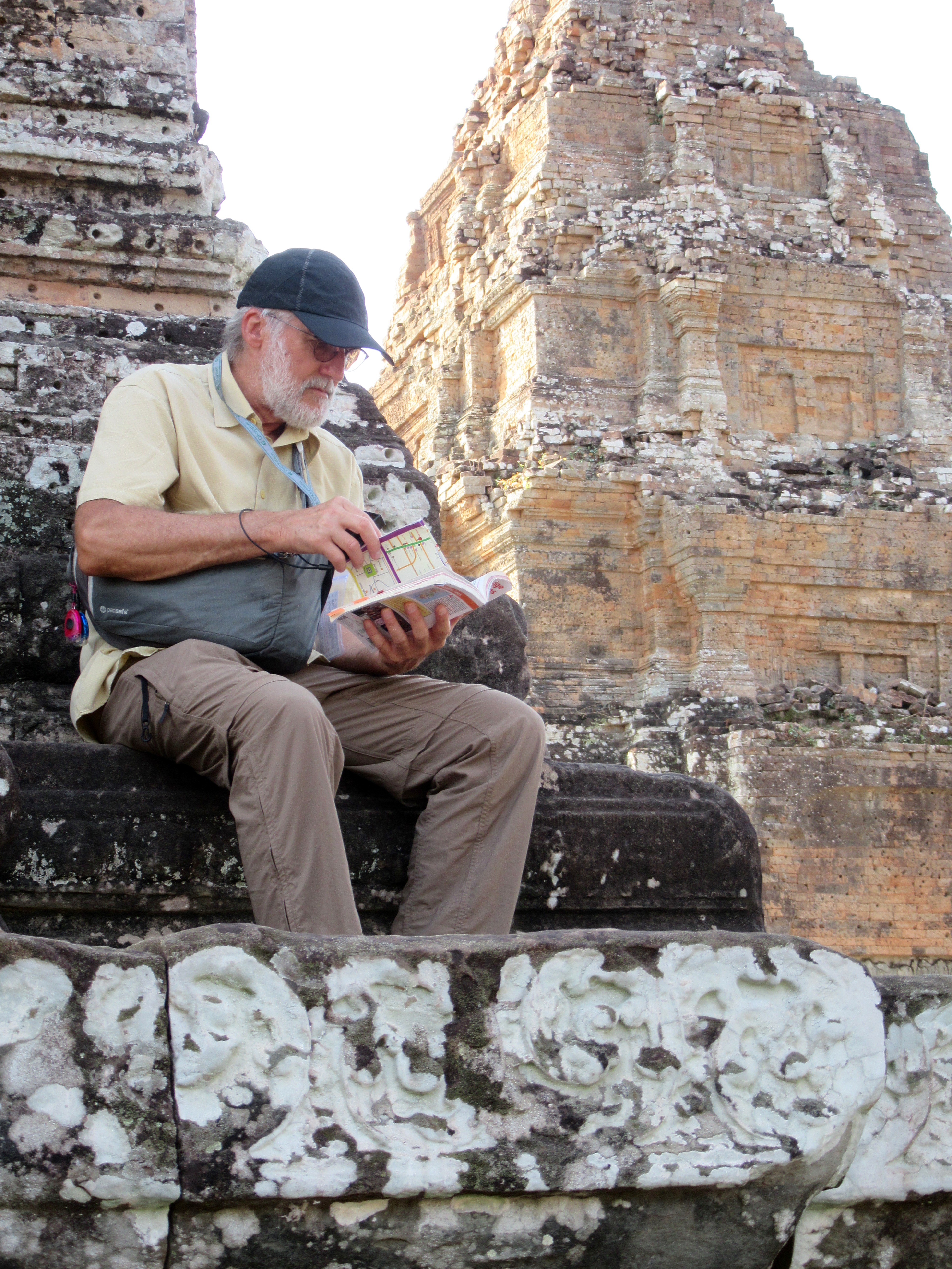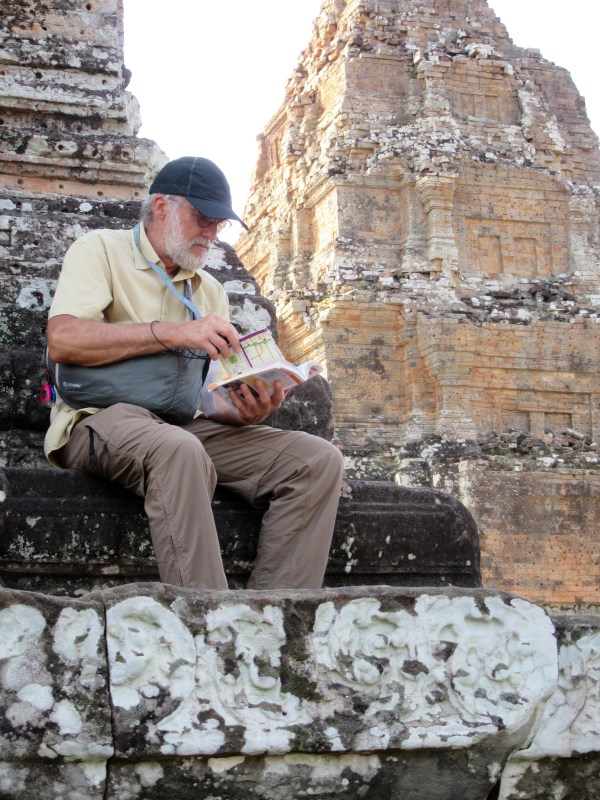 Lecture à Pre Rup pour mieux comprendre les rites funéraires et comprendre la signification de « tourner le corps », Angkor, Cambodge
