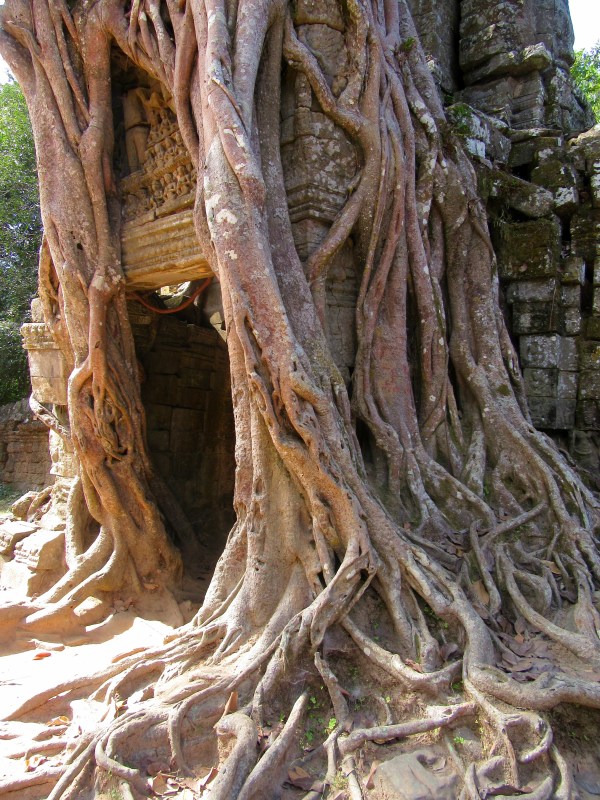 Un banian a élu domicile autour de la porte d’entrée de Ta Som, Angkor, Cambodge