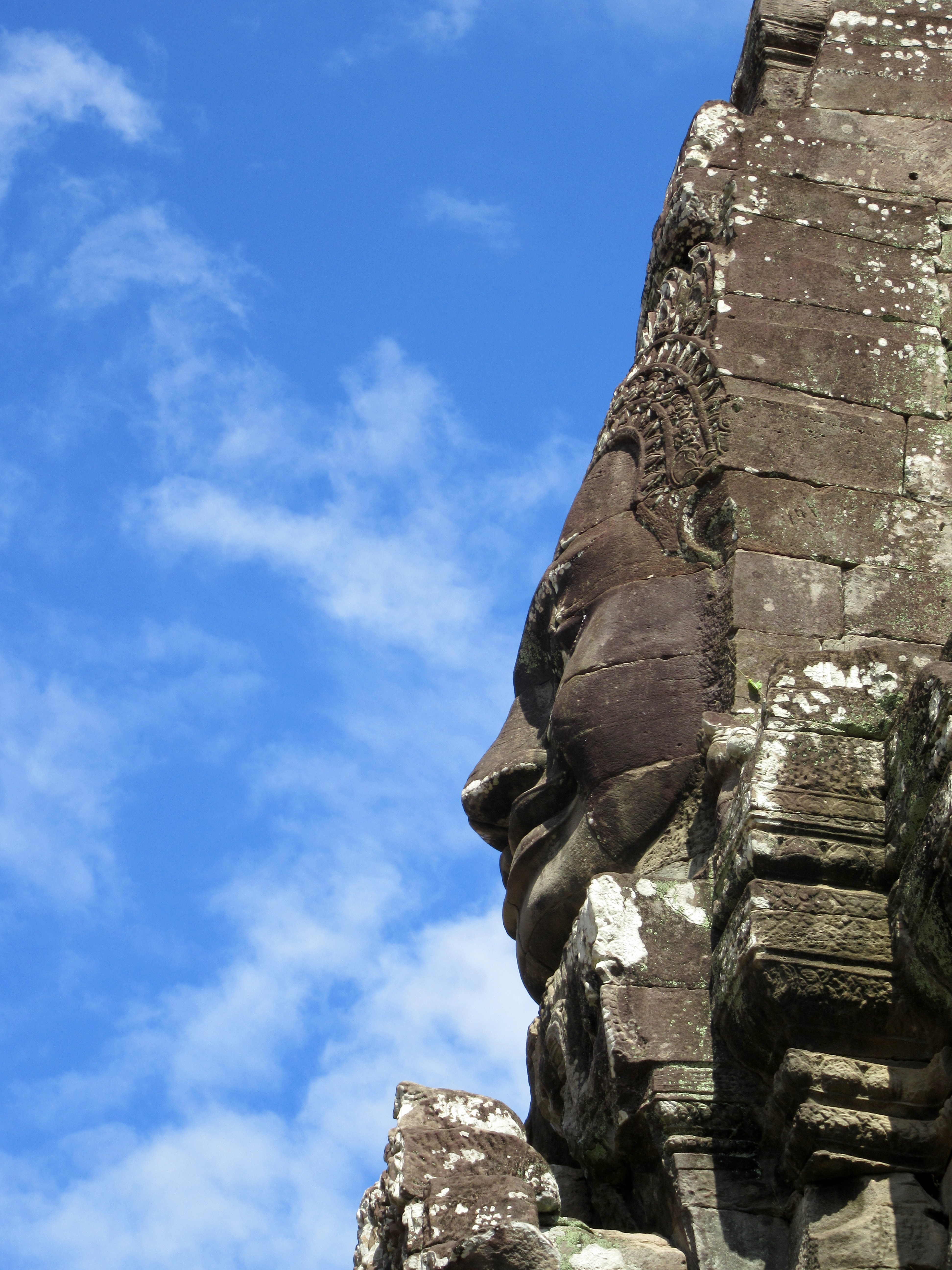 Un des quatre visages d’une tour se dégage sur le ciel bleu