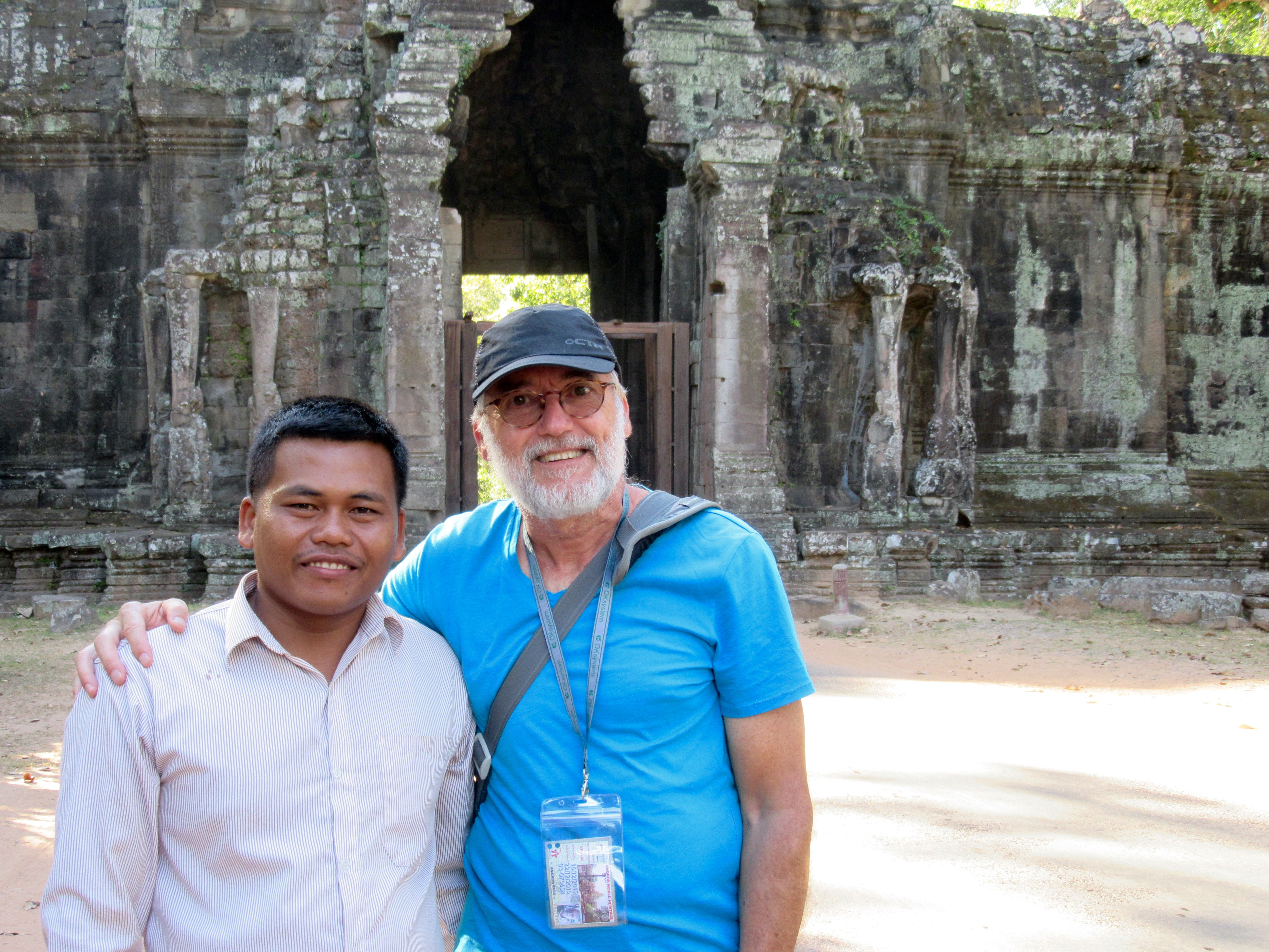 À l’entrée de Angkor Thom avec notre chauffeur de tuk tuk monsieur Kong