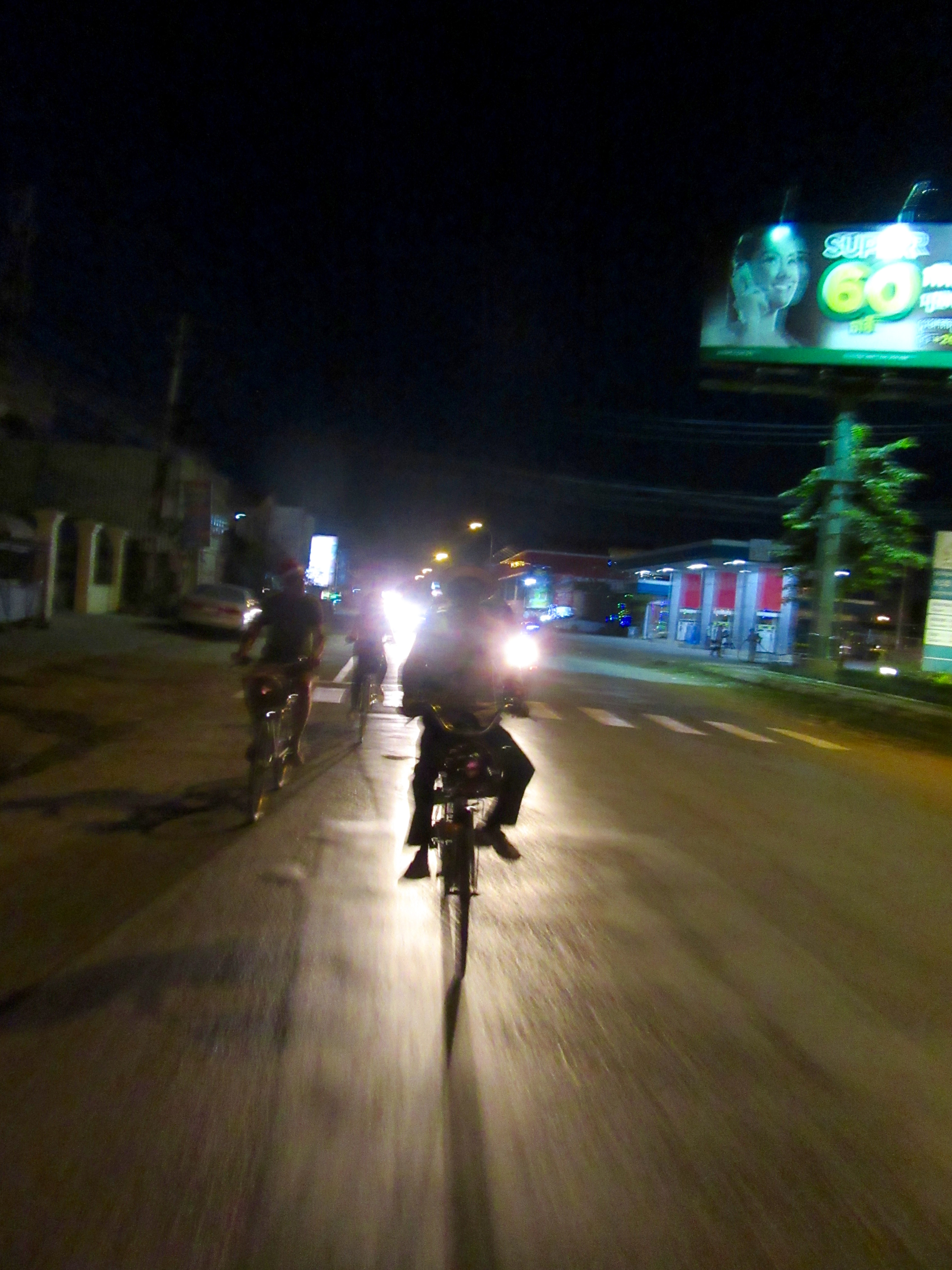 Le tour de vélo se termine à la nuit tombée, Battambang, Cambodge