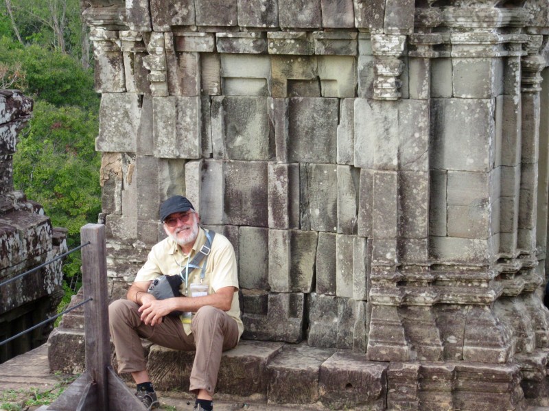 Du haut du temple Phnom Bakhèng au coucher du soleil, Robert n’a pas le vertige! Angkor, Cambodge