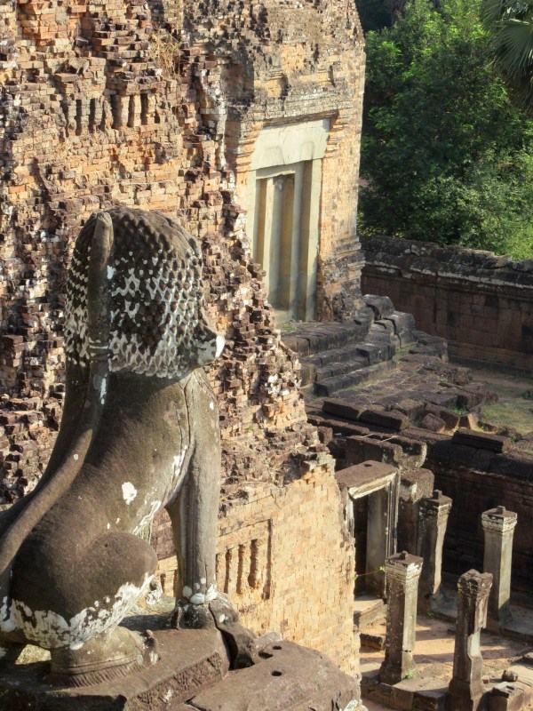 Un des lions de Pre Rup monte la garde, Angkor, Cambodge