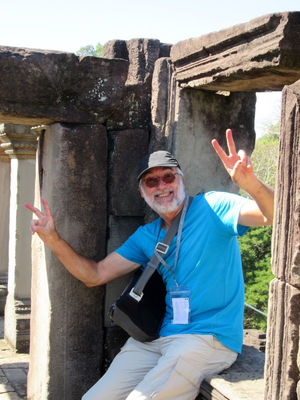 Mon amoureux imite les autres touristes qui prennent des poses interminables, Baphuon, Angkor, Cambodge
