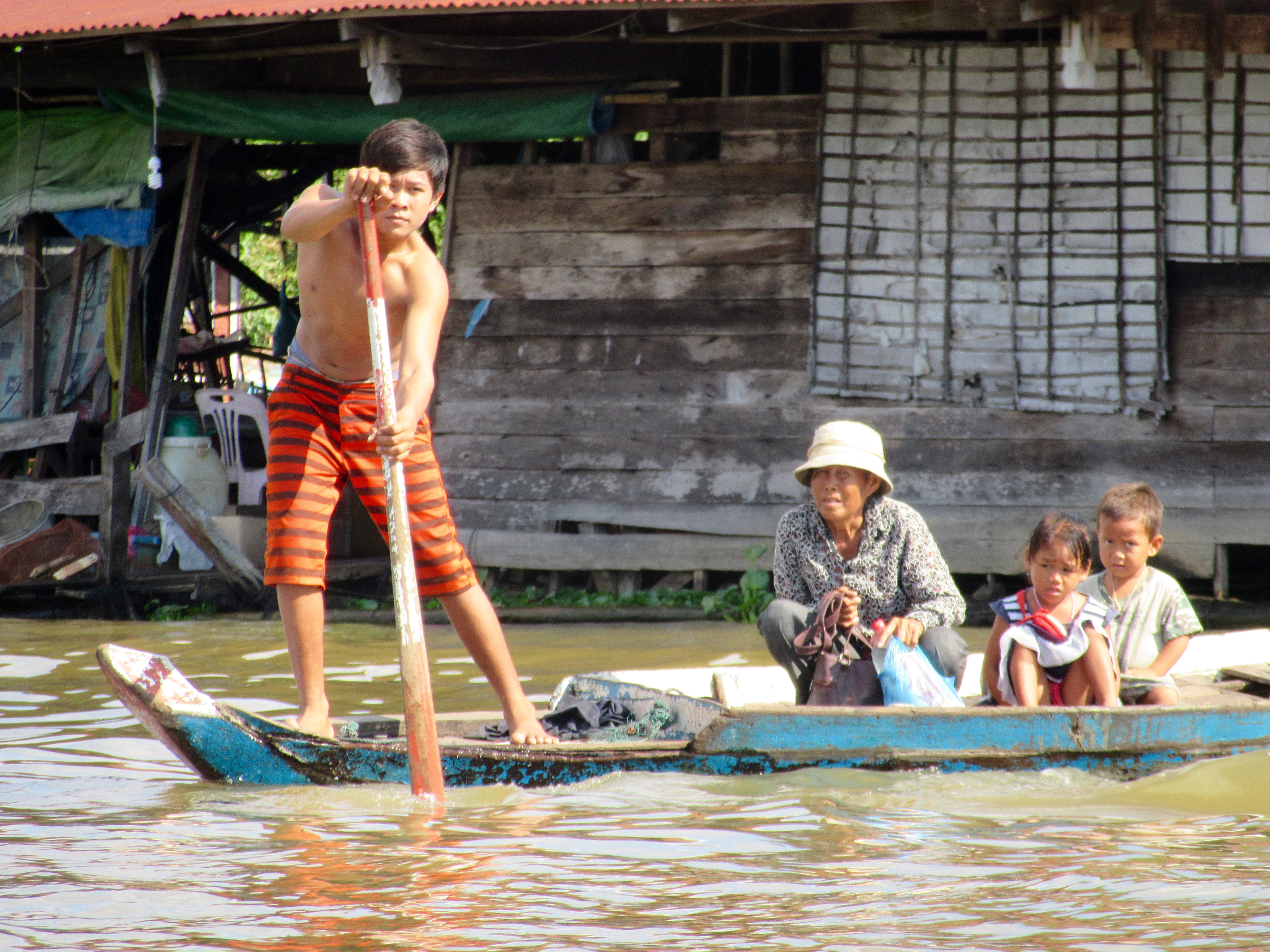 Une petite famille qui vient se joindre à nous sur notre embarcation, Tonlé Sap, Cambodge