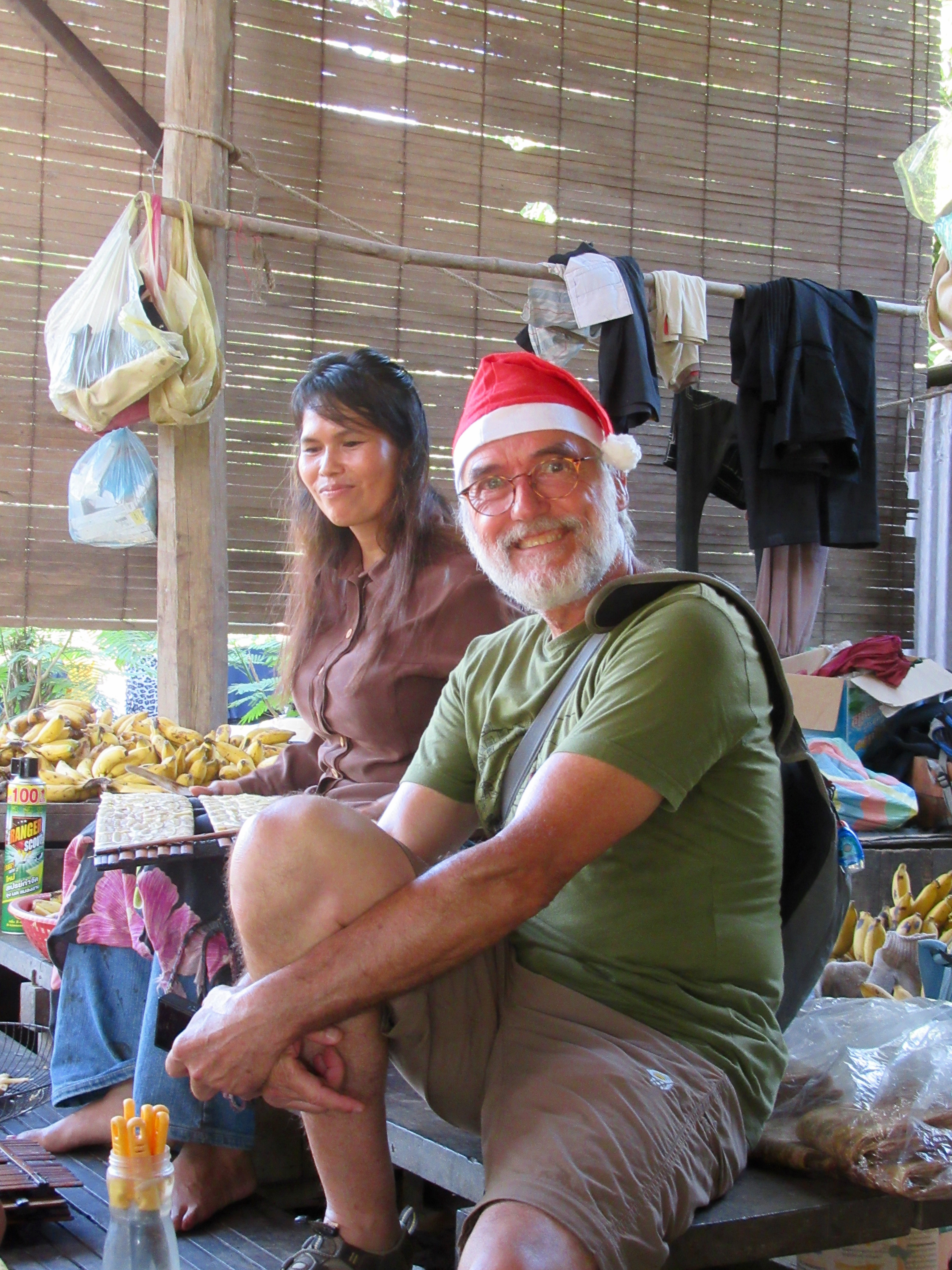 Robert avec la marchande de bananes séchées, Battambang, Cambodge