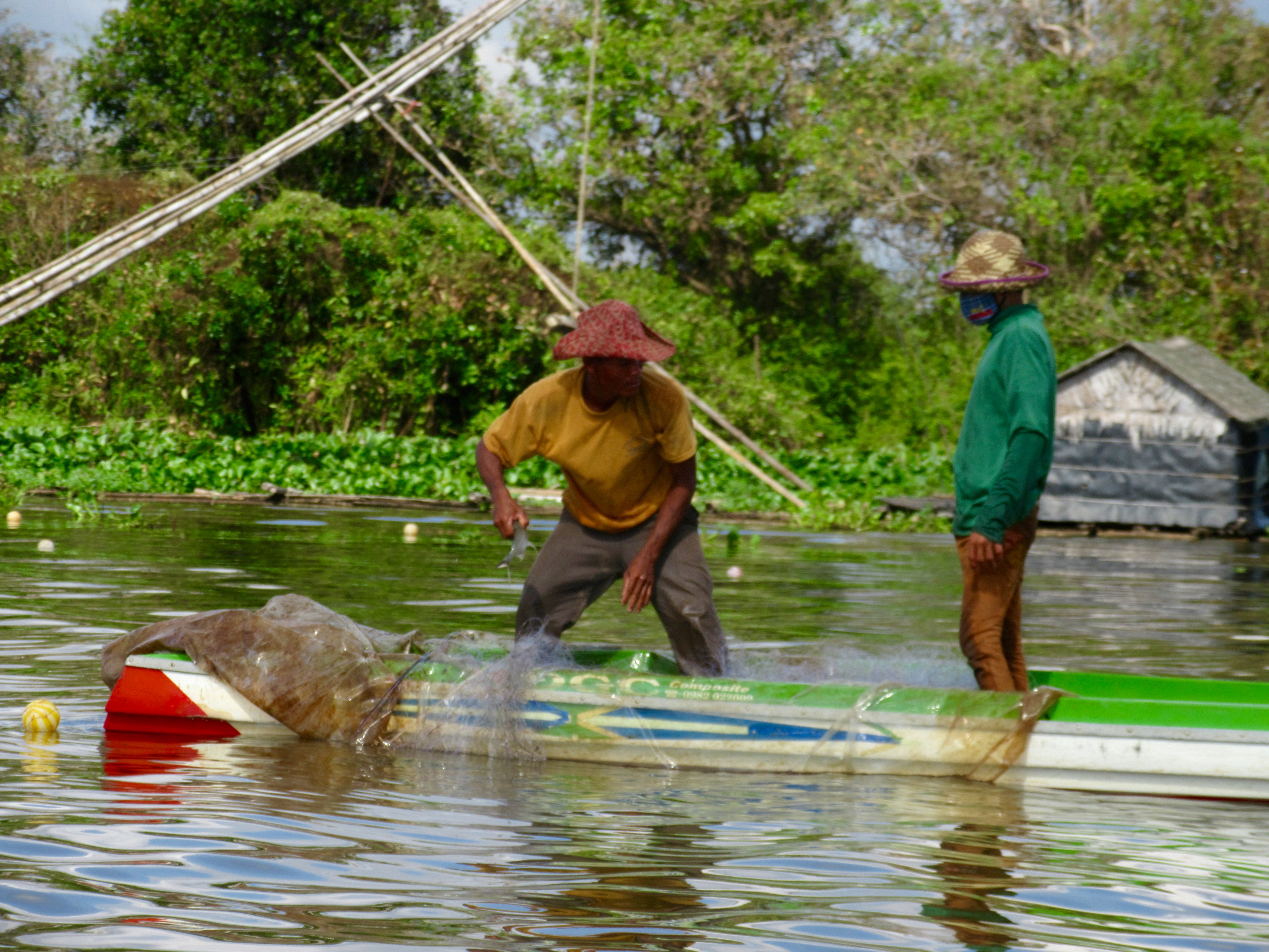 La pêche est bien sûr une activité importante dans un village flottant, Tonlé Sap, Cambodge