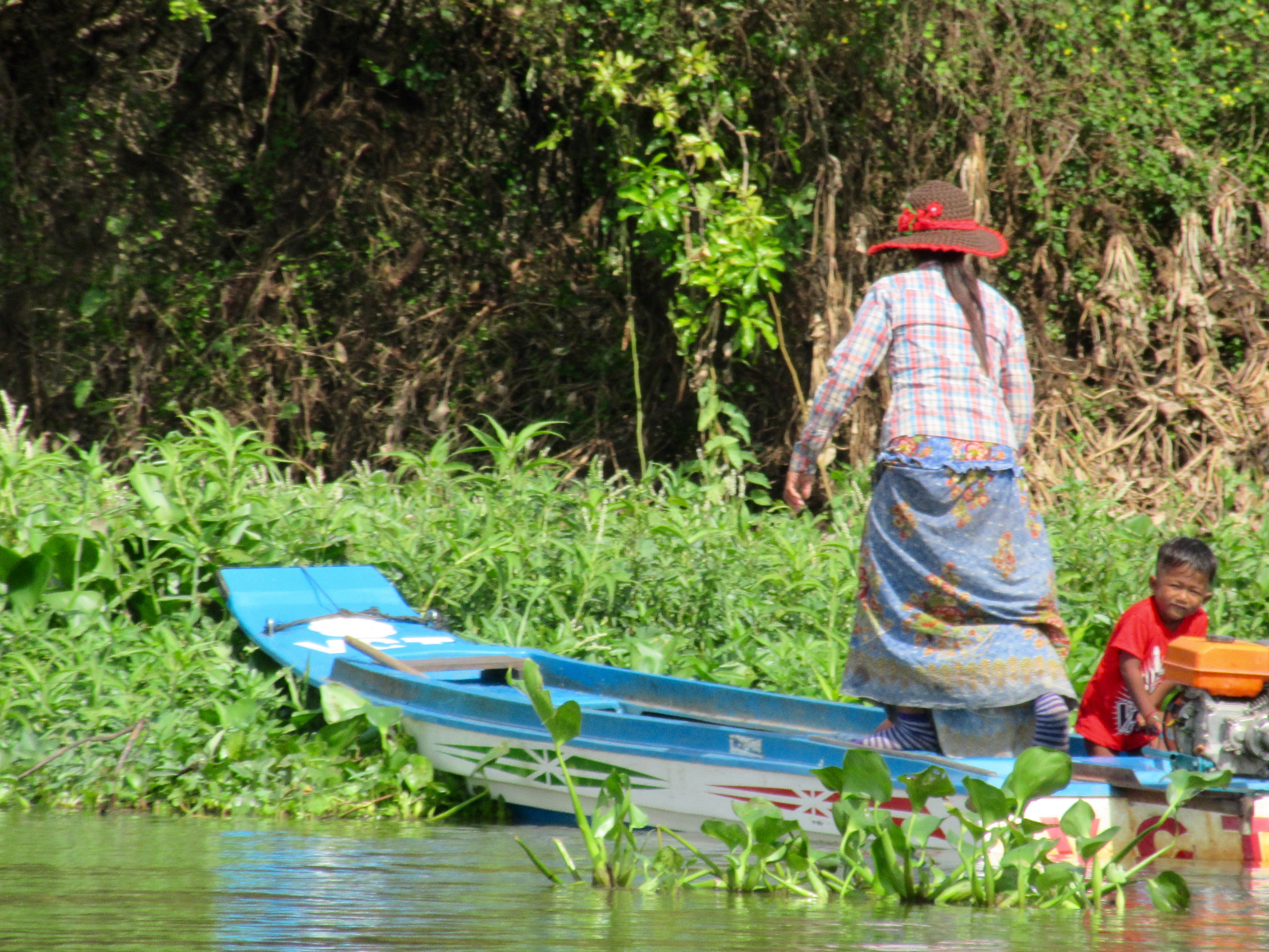 Une petite barque est un moyen privilégié pour se déplacer à l’intérieur du village flottant, Tonlé Sap, Cambodge