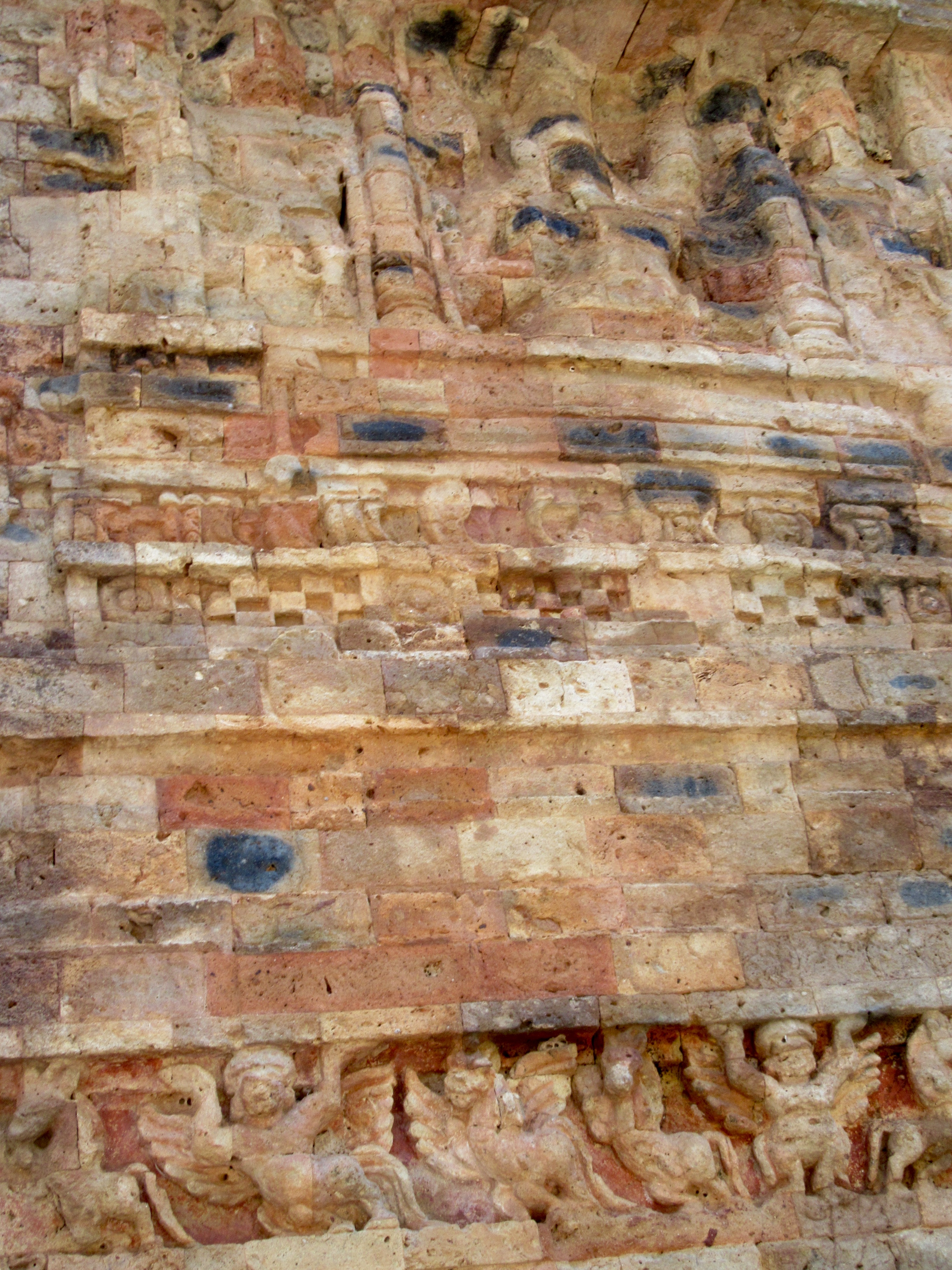 Détail des sculptures ornant un temple de Sambor Pre Kuk, Cambodge