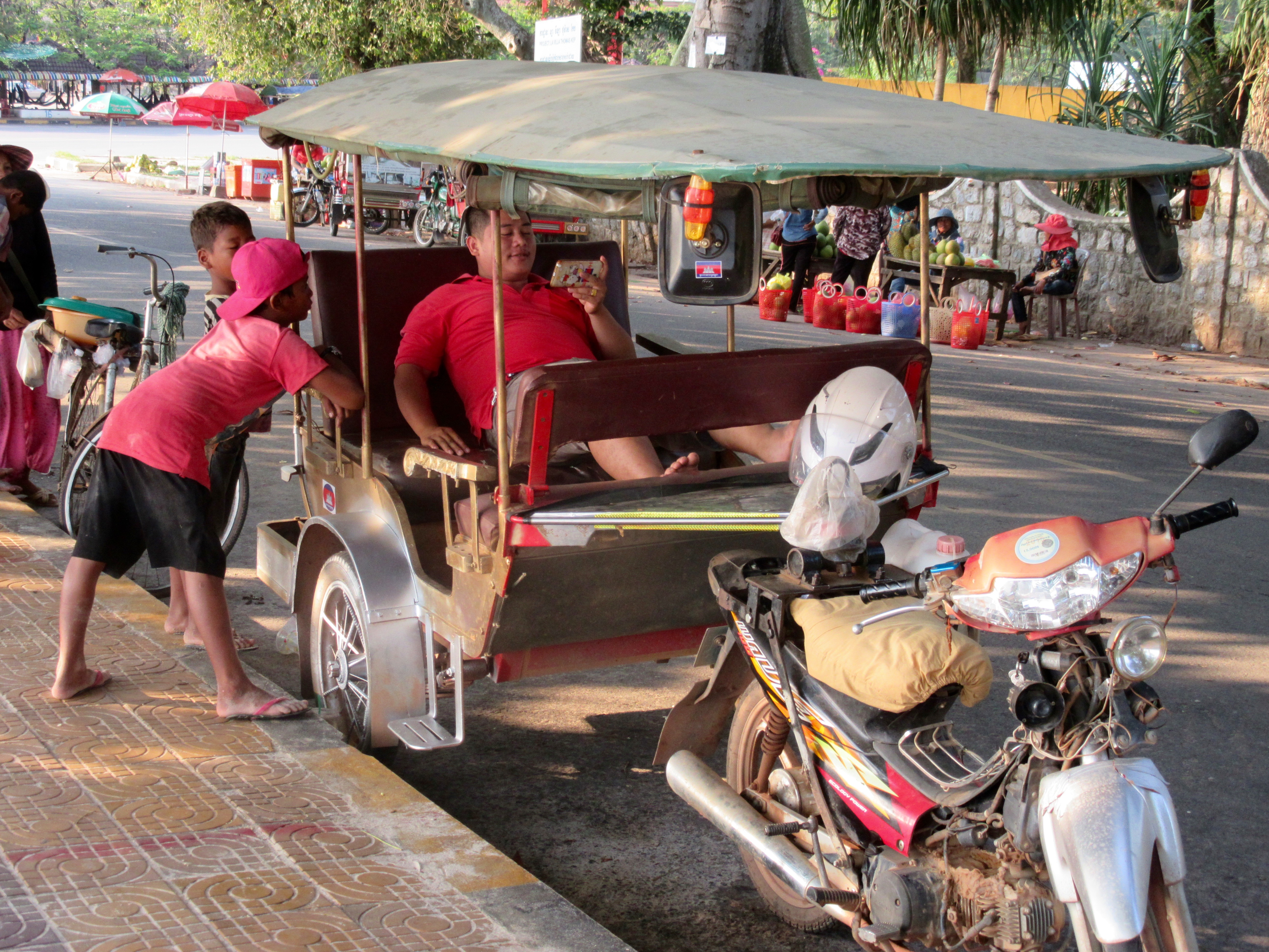 Notre chauffeur de tuk tuk avec des enfants de Kep, Cambodge