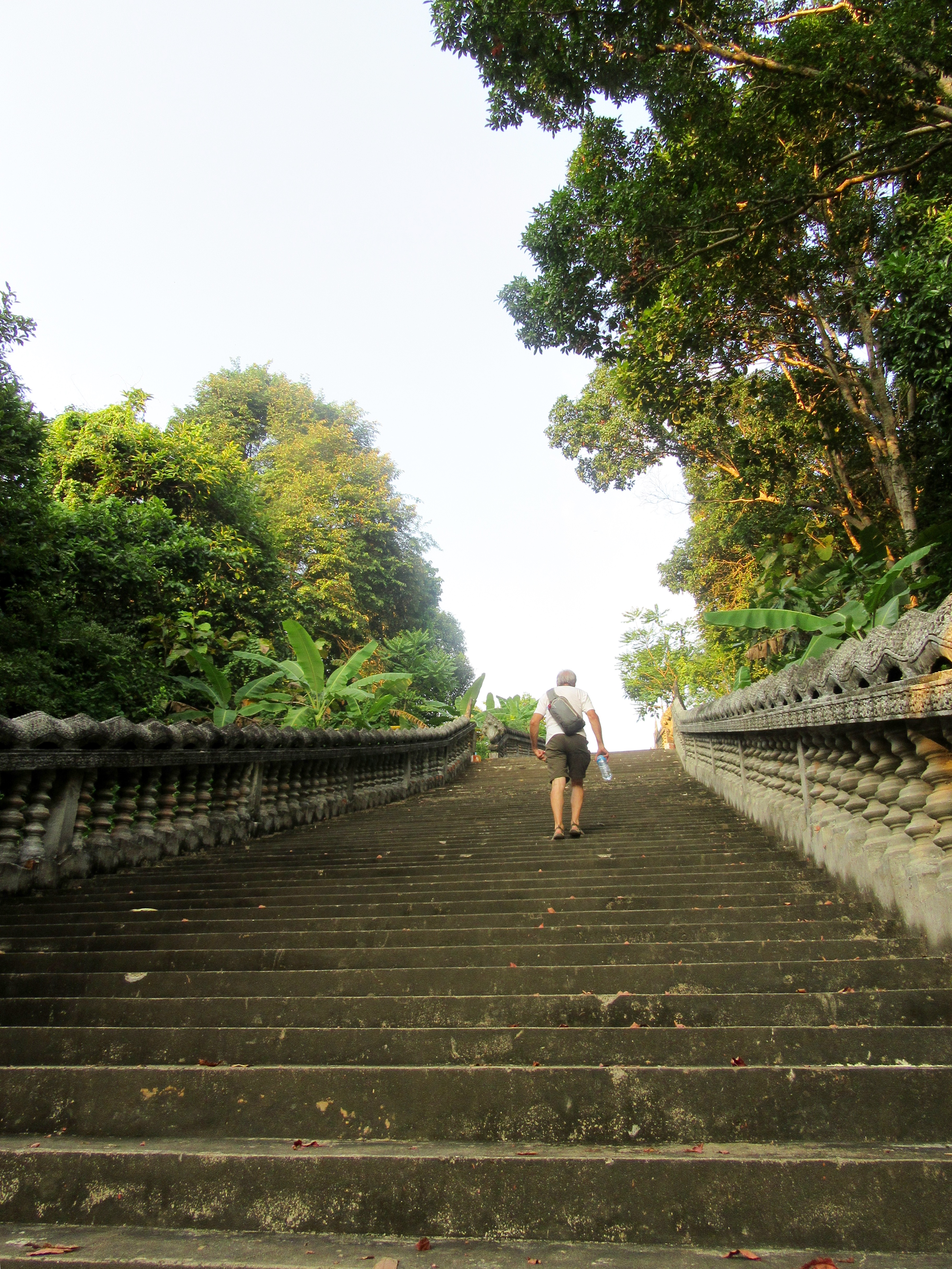 La montée est longue vers le temple dans la montagne mais la visite vaut la peine, Kep, Cambodge