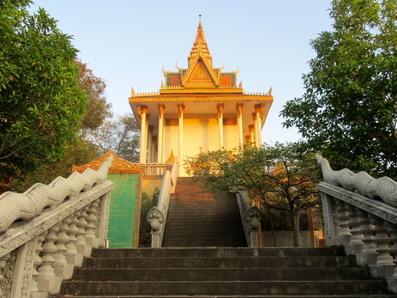 Une visite en solitaire pour nous recueillir dans un temple à flanc de montagne, Kep, Cambodge