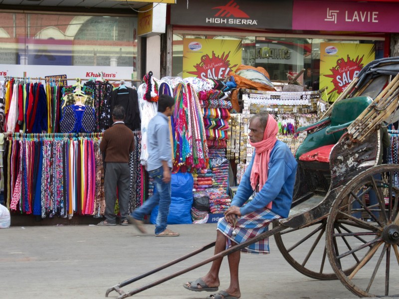 Un rickshaw-puller attend son prochain client, Kolkata, Inde