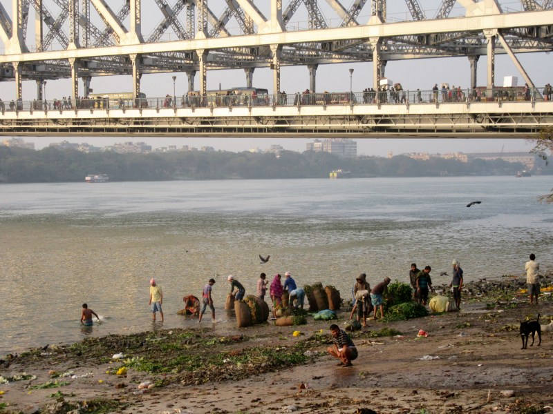 Acivité dans un ghat sous le pont Howrah, Kolkata, Inde