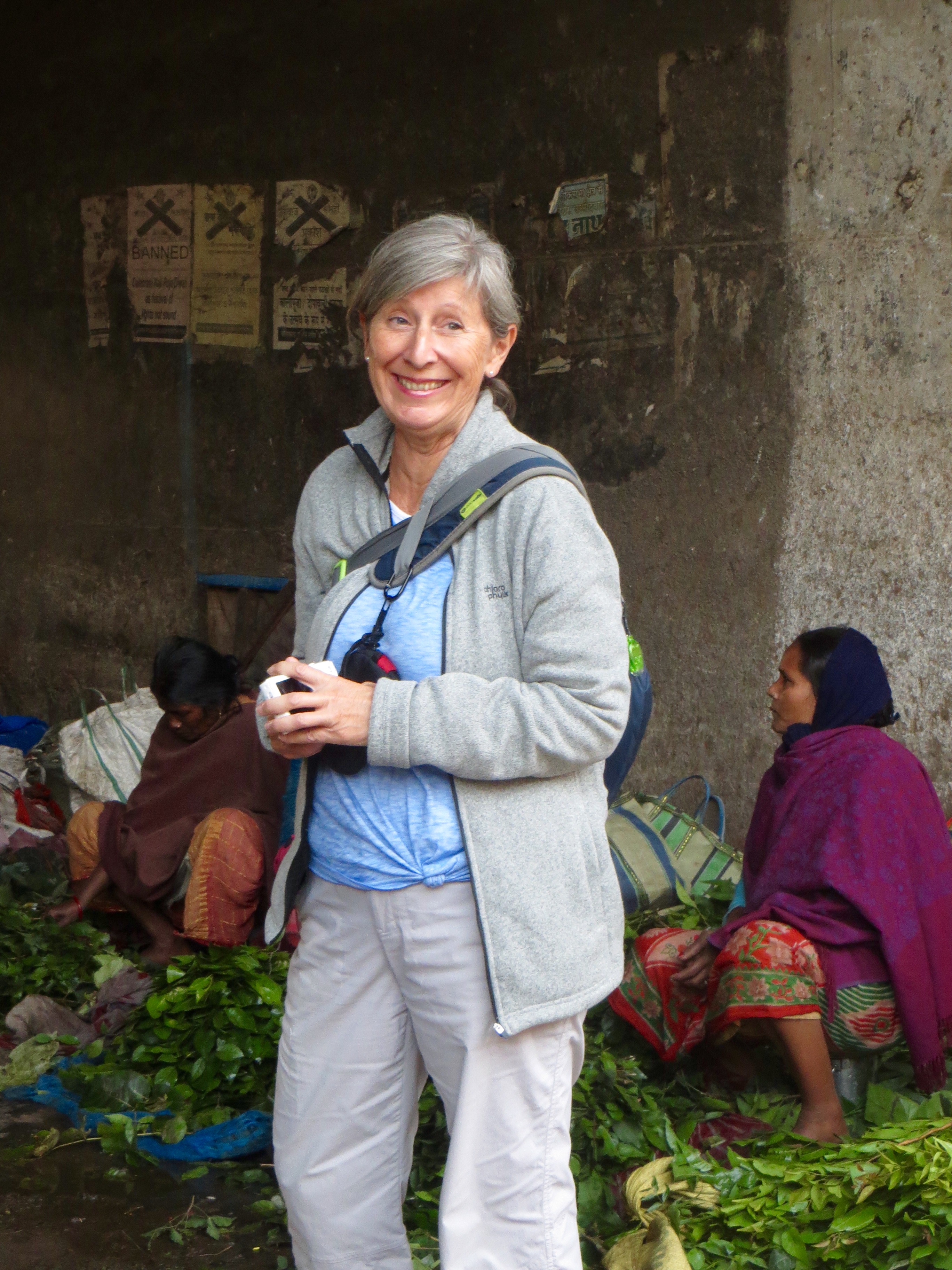 Photo de Robert: Jocelyne amusée d’une scène au marché aux fleurs, Kolkata, Inde