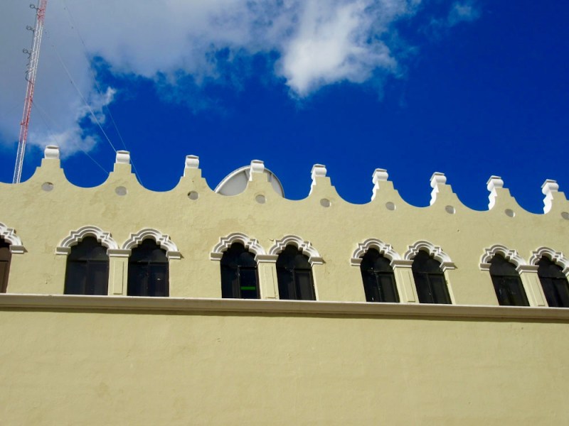 Détail de la corniche de l’Université du Yucatán, Mérida, Yucatán, Mexique.