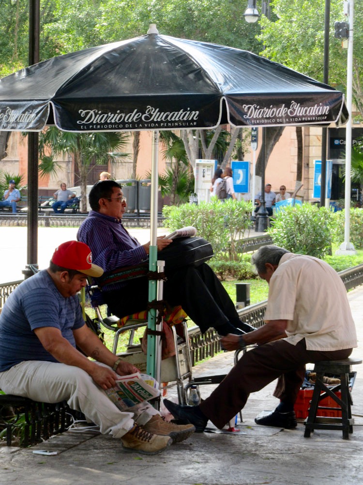 Une pause pour faire cirer ses chaussures. Mérida, Yucatán, Mexique.