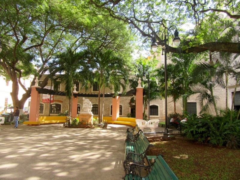 Petite place à côté de la Iglesia El Jesùs, Mérida, Yucatán, Mexique.