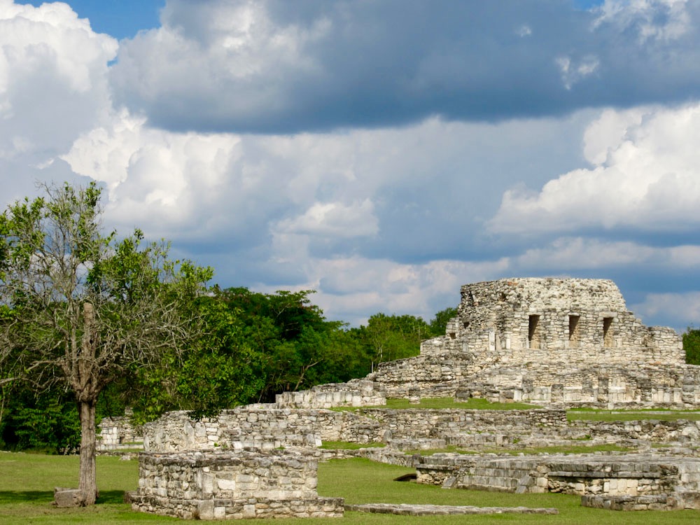 La place centrale de Mayapan regroupait des sanctuaires et des autels, entourés d’édifices gouvernementaux, Yucatán, Mexique.