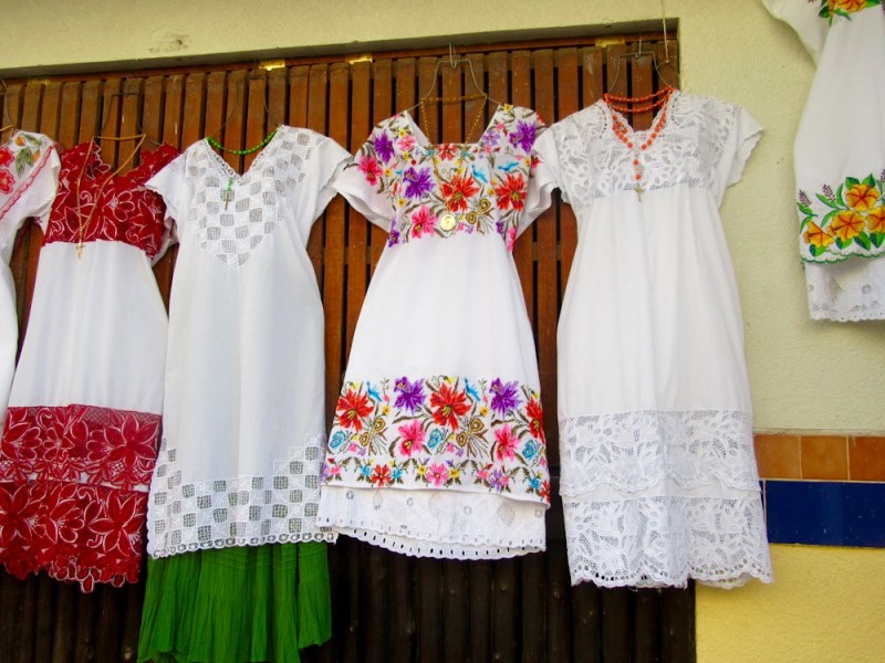 Des robes traditionnelles dans une boutique de la ville de Mani, Yucatán, Mexique.