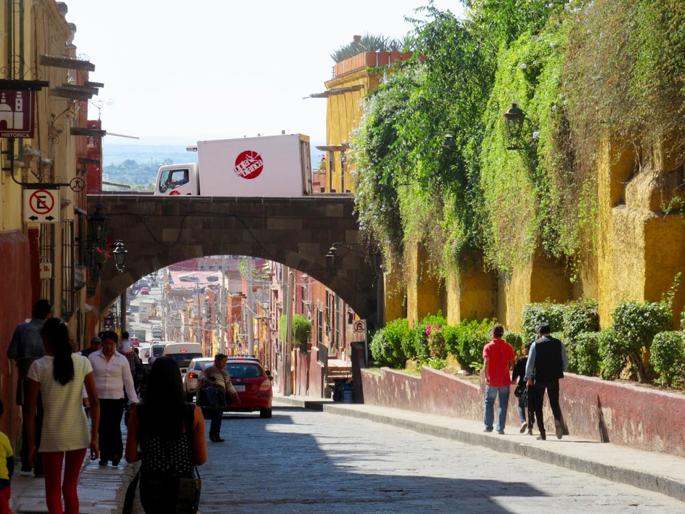 Le pont de la rue Quebrada surplombe l’historique rue Canal. Il offre une vue imprenable sur la ville et ses lacs au loin. C’est l’une de mes vues préférées. San Miguel de Allende, Guanajuato, Mexique.