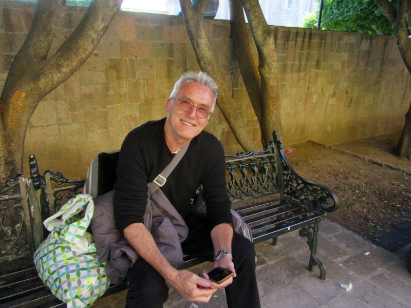 Un petit arrêt à la Plaza Allende pour reprendre notre souffle et profiter du soleil d’après-midi. La vue sur le temple de Nuestra Señora de la Salud ne cesse de m’émerveiller. L’ambiance y est inégalable. Plusieurs habitants de San Miguel de Allende choisissent de s’y asseoir pour se reposer, discuter ou attendre l’autobus qui s’arrête tout près. Guanajuato, Mexique.
