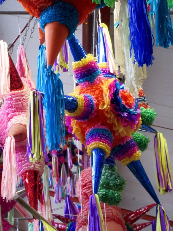 Des piñatas multicolores sont accrochées au plafond du marché Ignacio Ramírez. San Miguel de Allende, Guanajuato, Mexique.