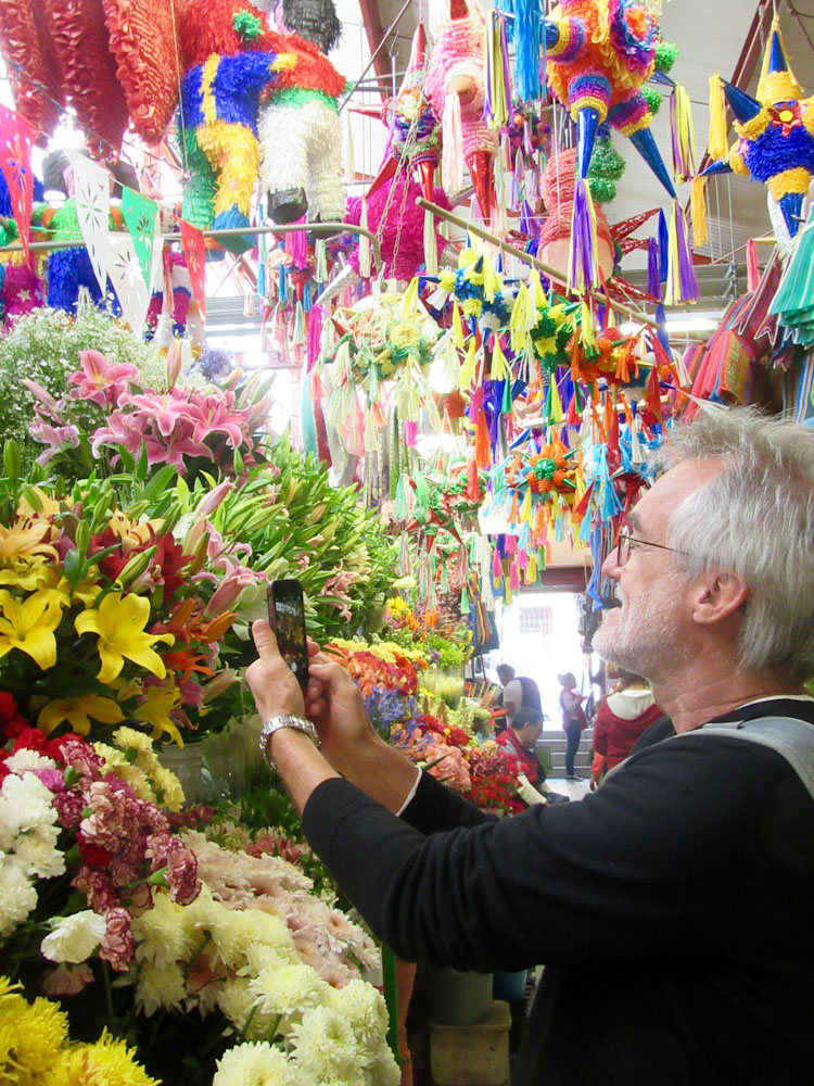 Mon amoureux parmi les fleurs du marché Ignacio Ramírez, San Miguel de Allende, Mexique.